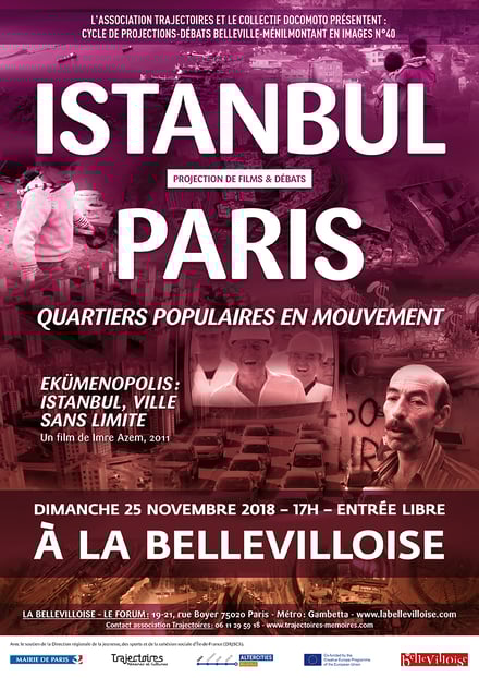 Cette séance, inscrite dans le cadre du projet européen Altercities, prolonge la séance « Belleville- Karakoy… » de juin 2017, croisant les regards entre les quartiers populaires à Paris et Istanbul sur les processus d’embourgeoisement et de métropolisation à l’oeuvre dans ces villes.