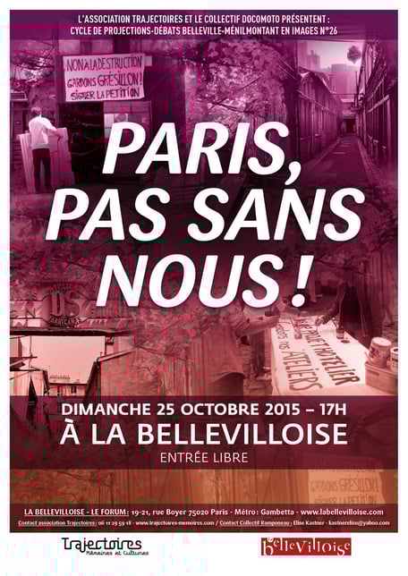 Projet réalisé par Patrick Bezzolato (Conservatoire Historique du 19e arrondissement), Anne-Laure Chatelot (Bibliothécaire Ville de Paris), Cécile Morin (Médiathèque Marguerite Duras), Mohammed Ouaddane (Trajectoires) et Philippe Tourrière (Bibliothèque Claude Levi-Strauss)