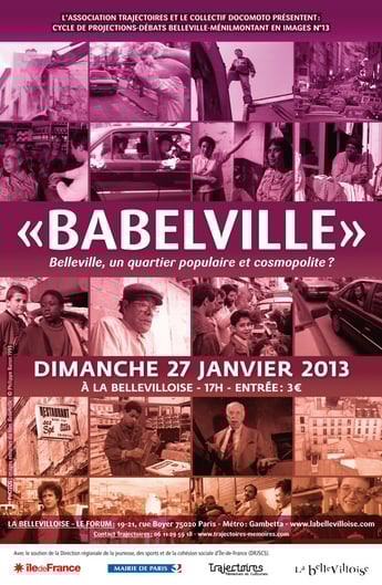 • 18h30 - Débat en présence de Nicolas Rialan (ancien responsable de la Bellevilleuse), Agnès Deboulet (sociologue) et Roselyne de Villanova (socio-anthropologue), co-directrices de l’ouvrage récent Belleville, Quartier populaire ?, Paris, Créaphis, 2011